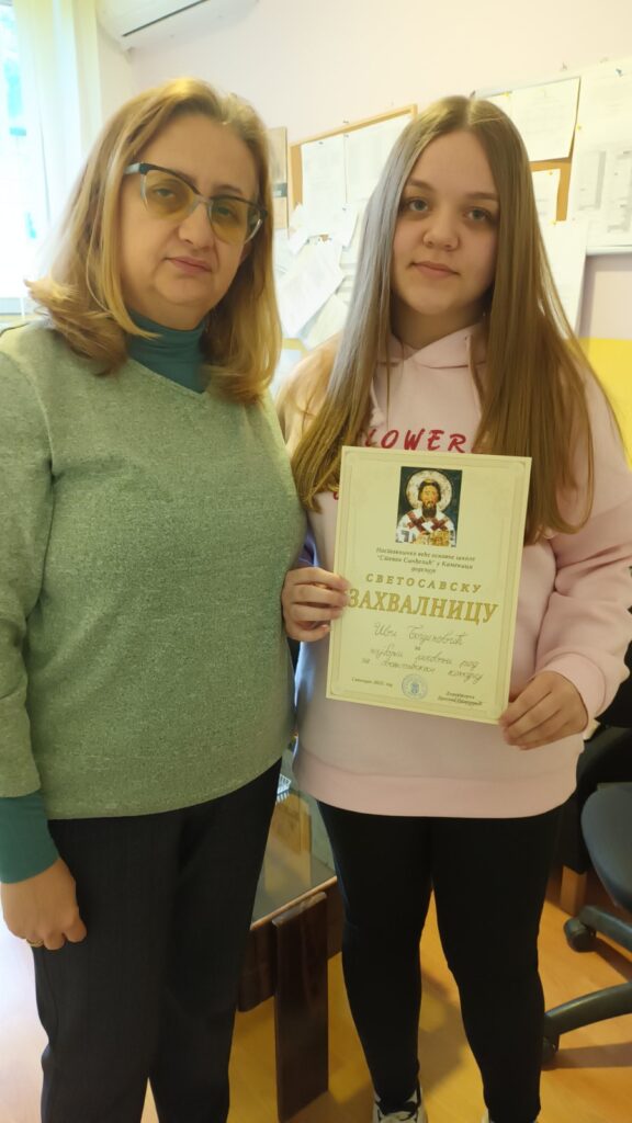- Хелена Динић и Ива Богдановић, ученице 7. разреда, добијају награду за најбоље ликовне радове.