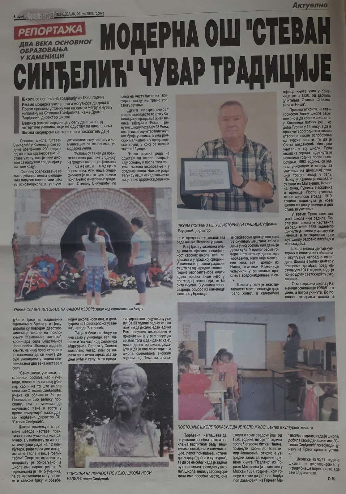 Дан школе 31.05.2022. године – чланак у новинама поводом тога