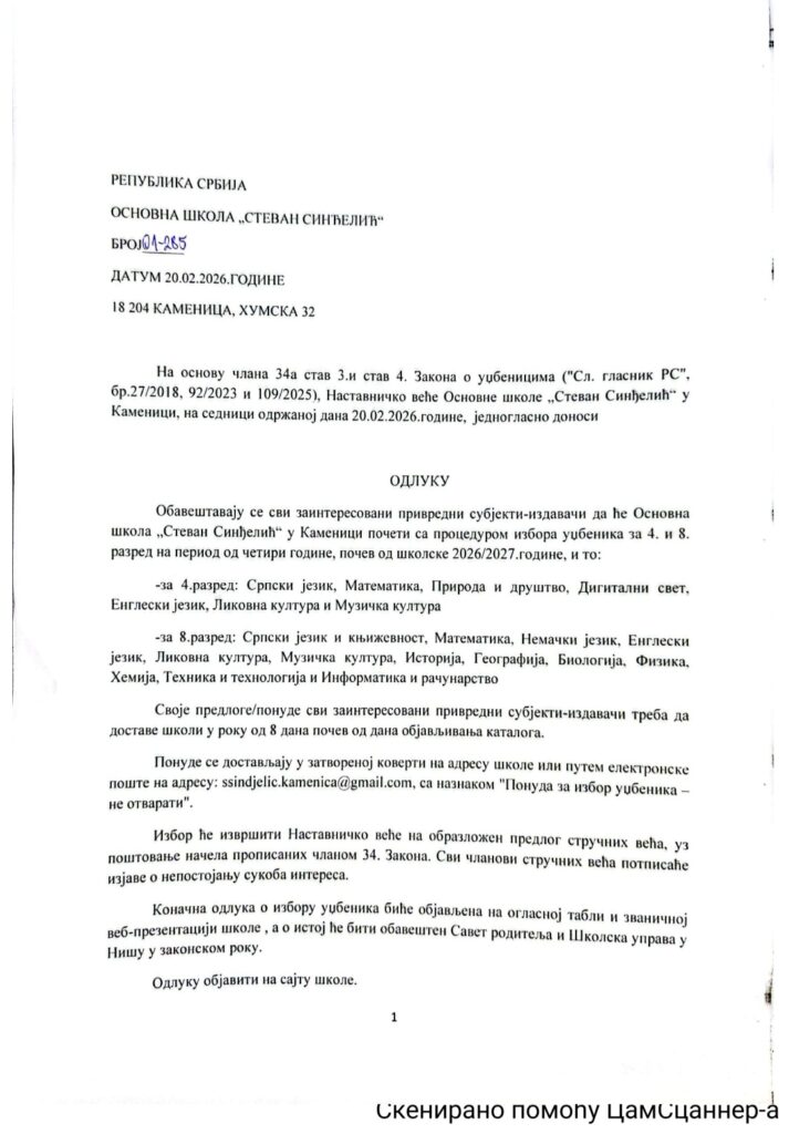 Izbor udžbenika za 4. i 8. razred na period od četiri godine, počev od 2026/2027. godineBy Школа / 21/02/2026